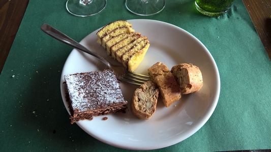 自家製ドルチェとヴェルナッツァ白とキャンテイ赤のワイン付き♪